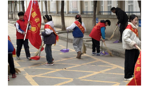 走出校門,孩子們的身影出現(xiàn)在校園周邊的街道上。他們手拿掃帚、夾子,彎腰清理路面垃圾,擦拭公共設(shè)施。路過老人停下腳步,笑著說:“這些小雷鋒,真不錯(cuò)!”
