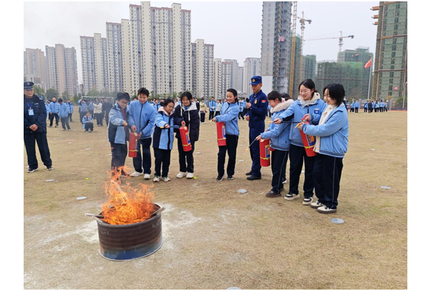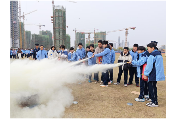 實操現(xiàn)場氛圍熱烈而有序,學(xué)生們認真投入、大膽嘗試,保安和食堂工作人員則結(jié)合崗位特點,重點強化實操技能,均熟練掌握滅火器使用方法,應(yīng)急處置能力得到顯著提升。