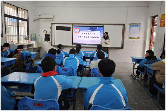 隨州新聞網(wǎng)訊(通訊員陳葦)為進(jìn)一步加強校園文明建設(shè),發(fā)揮少先隊員自主管理作用,營造安全、文明、和諧的校園環(huán)境,3月9日上午,淮河鎮(zhèn)第二小學(xué)少先隊大隊部組織開展新學(xué)期少先隊文明監(jiān)督崗崗前專題培訓(xùn),全體紅領(lǐng)巾監(jiān)督崗隊員參加此次培訓(xùn)。