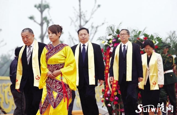 圖為 拜祖大典結束后,省委書記羅清泉(中)在市委書記馬清明(左),市委常委、政法委書記、公安局長萬學斌(右)等領導的陪同下,參觀炎帝神農故里新景區(qū)。